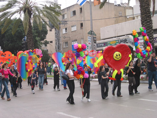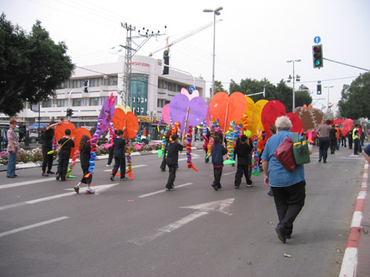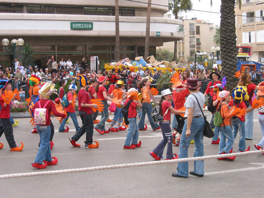 This is the first adloyada that I've seen because there was none last year or the year before, as people felt it would be inappropriate to have such ostentatious public celebrations going on at a time when horrors were being suffered daily. It was particularly enjoyable this year because of the acknowledgement in the air that no, it's not all perfect yet, but things are a lot better than they've been. It's time to celebrate purim!
